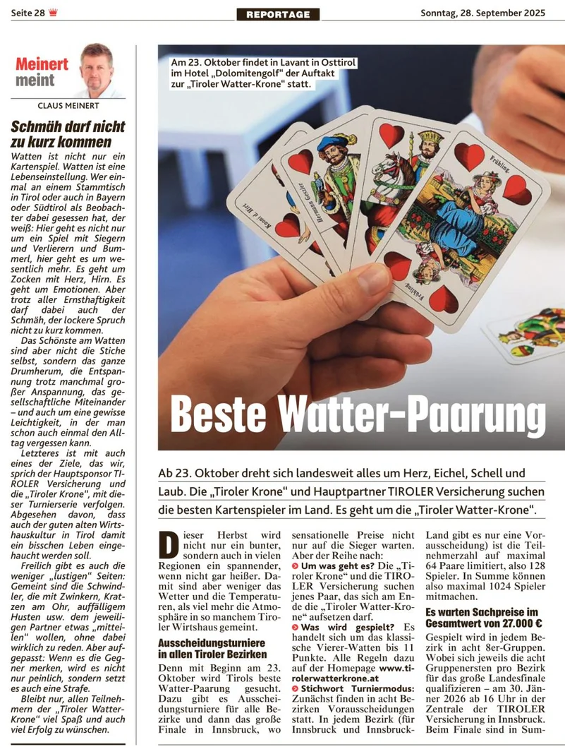 Beim Turnier um die TIROLER Watter Krone gelten folgende Spielregeln: